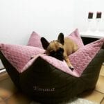 Anders als unsere Individuell Zusammenstellbaren Kronenkissen haben wir das Material direkt auf Lager, sodass der Hund sehr bald darin kuscheln kann.