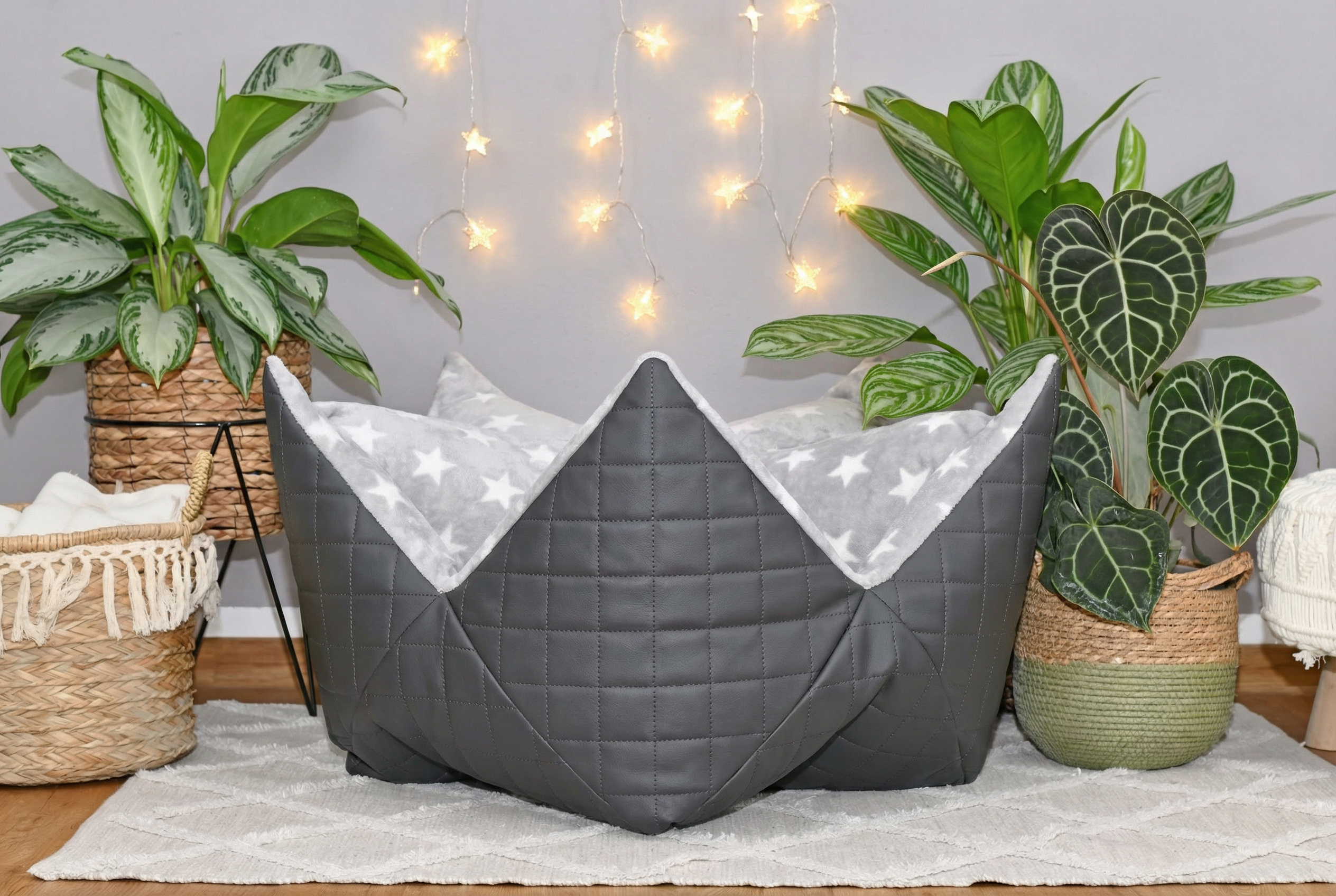 Das Kronenkissen Hund Hundebett ist ein kuscheliger Rückzugsort, den dein Hund lieben wird. Die charakteristischen, nach oben gerichteten Spitzen geben dem Bett seinen besonderen Charme und bieten gleichzeitig einen geschützten, gemütlichen Bereich zum Entspannen.